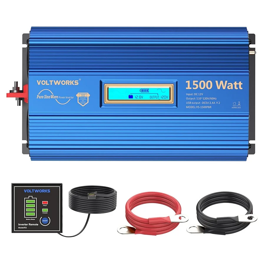 【What You Will Get】A 1500w pure sine wave inverter, a 15ft remote controller, a instruction manual, 2x Battery Cables (black and red),a friendly and patient customer after-service.12-Months Warranty.
