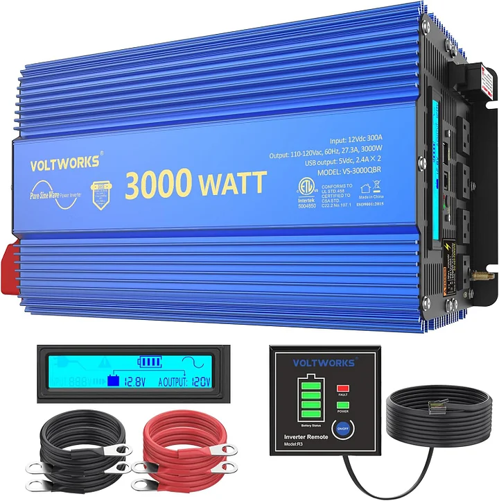 【What You Get】 A 3000w pure sine wave inverter,a 15ft remote controller, a instruction manual,2 pairs of Battery Cables,a friendly and patient customer after-service.12-Months Warranty.Product liability insurance is covered by AIG insurance company.